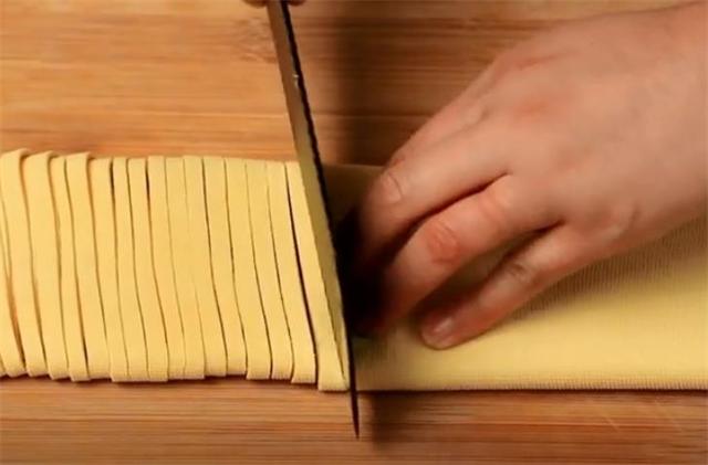 1.先把豆腐皮切成細條。
