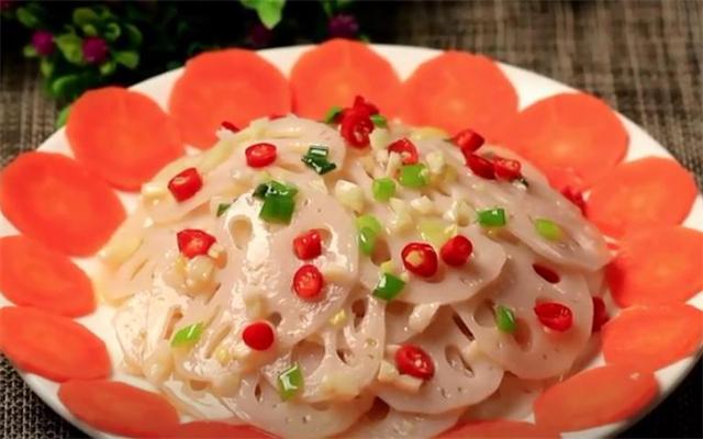準備食材: 蓮藕、白醋、蒜末、姜末、小米辣、蔥花、胡蘿卜、白醋、食用油、花椒、鹽、白糖、香油 具體做法:
