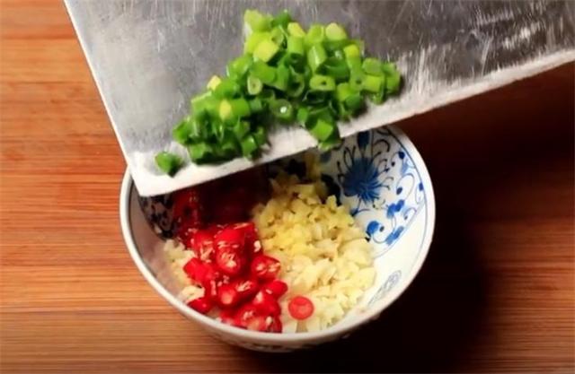 3.剁點蒜末和姜末,切點小米辣,再切點蔥花。