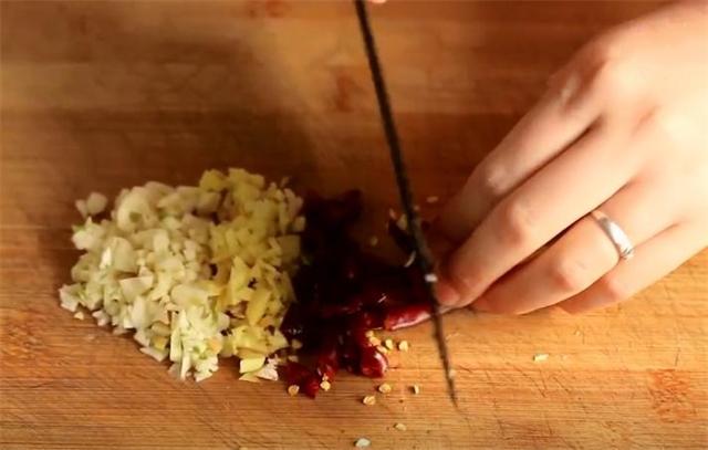 2.切點蒜末和姜末,再切點干辣椒段。