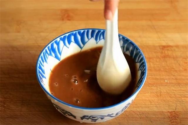 3.半碗清水里加入2勺生抽和2勺香醋,加點白糖,再加點生粉攪勻后備用。