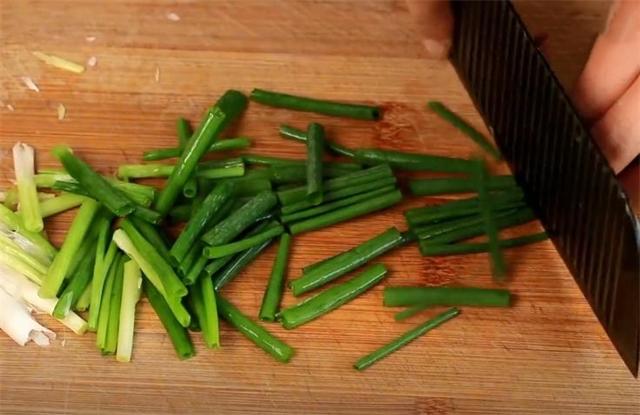 5.準(zhǔn)備點(diǎn)小香蔥給它拍一下,切成小段。