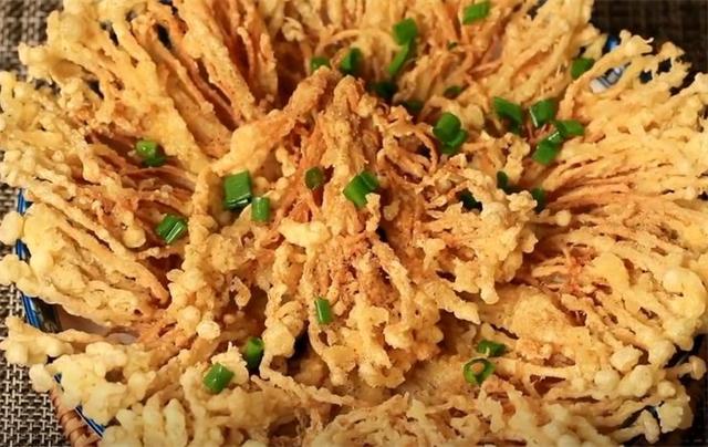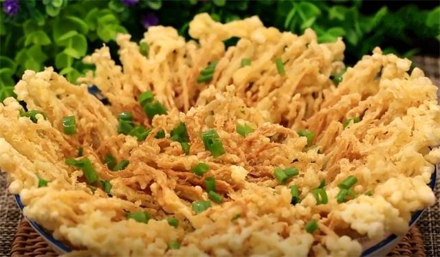 1把金針菇,1碗面粉,教你饞嘴新做法,孩子三天兩頭喊著想吃。金針菇是我們常見的菌類,味美嫩滑,鮮金針菇富含B族維生素、維生素C、碳水化合物、礦物質、胡蘿卜素、多種氨基酸。金針菇能有效地增強機體的生物活性,促進體內新陳代謝,有利于食物中各種營養素的吸收和利用,對生長發育也大有益處,因而有“增智菇”、“一休菇”的美稱。金針菇的熱量非常低,100克金針菇只有26大卡的熱量,適合減肥吃,而且還含有蛋白質,粗纖維,可以促進腸胃蠕動,對減肥也有一定的作用。金針菇的吃法也特別多,比如做湯或蒸、涼拌、炒、炸都可以,今天就用金針菇給大家分享一道美食。