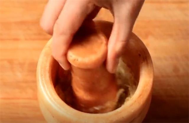 4.準備幾個大蒜切一下,再搗成蒜泥。