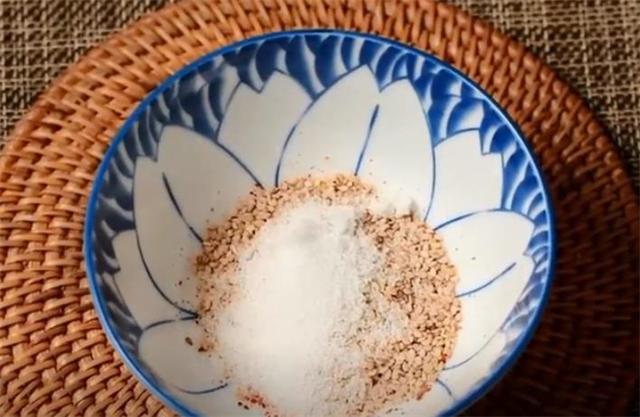 1.先往碗里倒點辣椒面,再加點白芝麻,一勺食鹽。