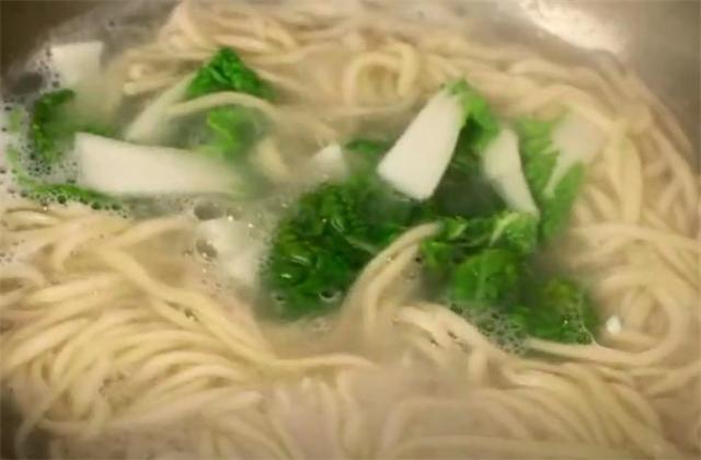 3.面條下鍋煮熟,青菜下鍋燙熟。
