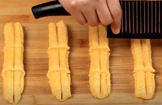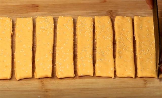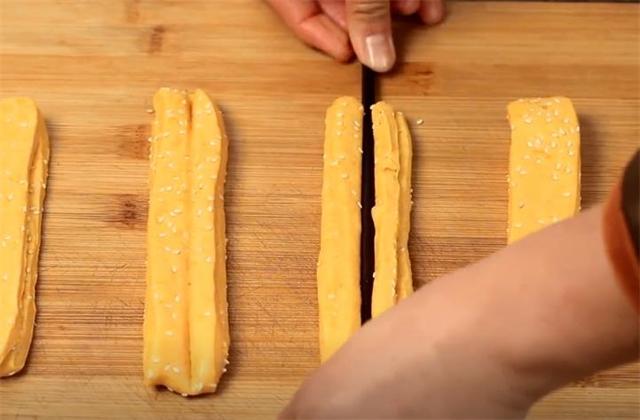 5.然后用搟面杖搟成長方形,用刀切成長條。