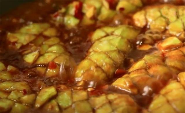 7.鍋留底油加一勺豆瓣醬,炒出紅油后加蔥姜蒜炒香,加入料汁,煮沸后加入茄子,煮至入味后收汁裝盤。