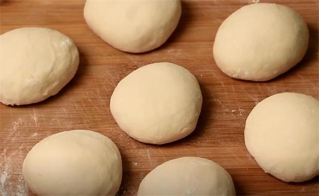 3.半個小時后再把面揉兩分鐘,揉成長條后切成等份的小劑子,把小劑子再揉成這樣的扁圓形。