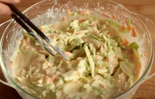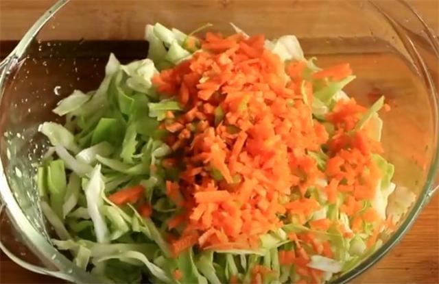 準備食材: 包菜、胡蘿卜、青椒、清水、普通面粉、食用油、素火腿腸、海苔碎、番茄醬、沙拉醬、蔥花 具體做法: