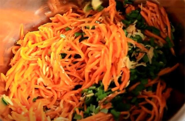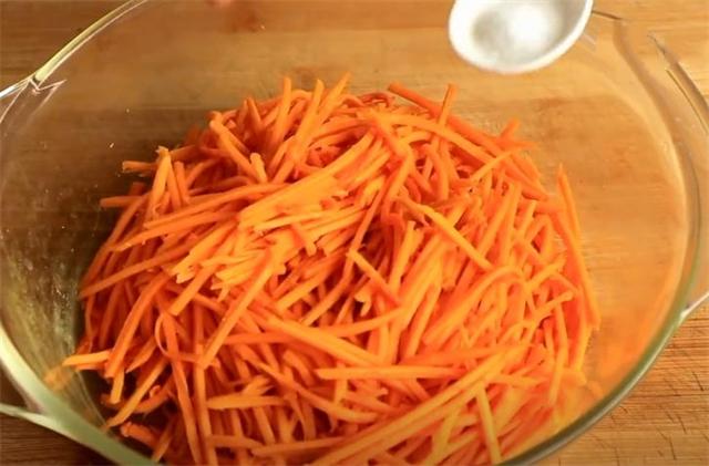 2.南瓜去皮后擦成絲,加入食鹽腌制5分鐘。