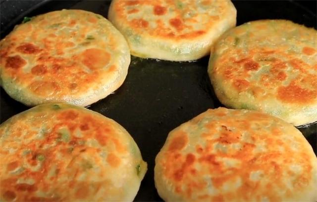 5.電餅鐺刷油后把餅放上去,來回翻面烙至金黃熟透后即可出鍋。
