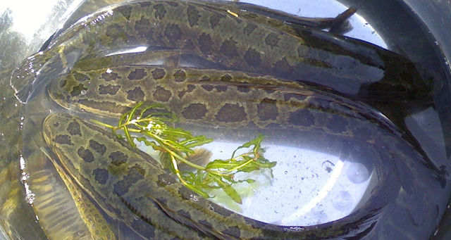 活頭是黑魚。 1、烏鱧即黑魚又名活頭魚。形態特征:形呈長棒狀;頭部扁平,頭大,口裂大;口內齒牙叢生;頭部與軀干部皆被有大小相似的鱗片;頭頂部有感覺小孔;體色背部灰綠色,腹部灰白,體側有作八字形排列的顯明黑色條紋;頭部有三對向后伸出的條紋。生活習性:烏鱧是營底棲性魚類,通常棲息于水草叢生、底泥細軟的靜水或微流中,遍布于湖泊、江河、水庫、池塘等水域內。時常潛于水底層,以擺動其胸鰭來維持身體平衡。食性特征:烏鱧為兇猛的肉食性魚類,且較為貪食。捕食對象隨魚體大小而異。分布區域:烏鱧主要分布于長江流域以及北至黑龍江一帶,湖北、江西、安徽、河南、遼寧等省居多。