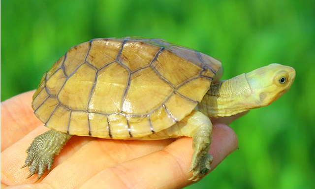 小青龜是什么 小青龜又叫黃喉擬水龜。它的甲長大約在15-20厘米。頭部較小,顏色呈橄欖綠色。頭部兩側有兩條黃線紋穿過眼部。它的背甲扁平,顏色呈棕黃綠色或者棕黑色。主要棲息在山澗的河流中。