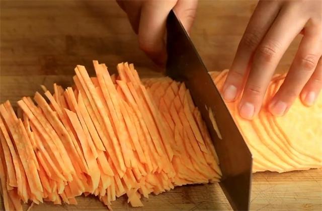 1.先把紅薯皮去掉,再切成薄片,然后再切成細絲,放水里清洗一遍。