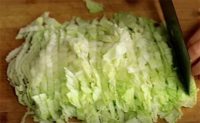 1.先把白菜的葉子扒下來 ,然后清洗干凈,把白菜幫切掉,然后切成細絲。