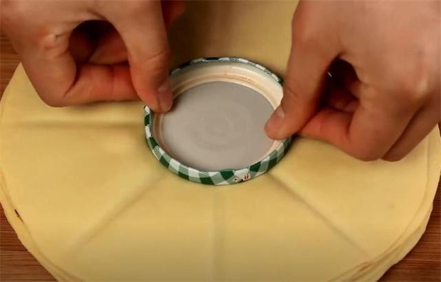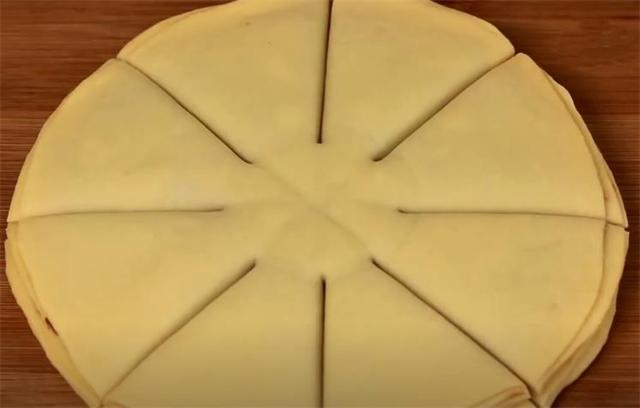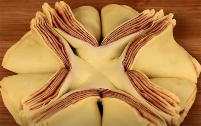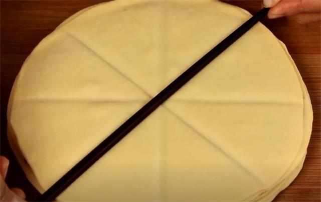 6.就這樣把八張面皮全部摞在一起,用筷子壓出印子。