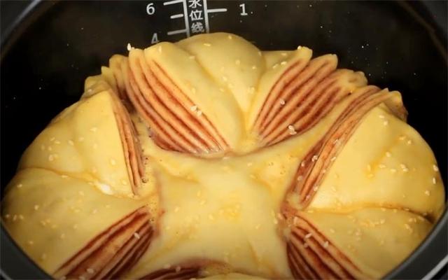 11.醒好后刷點食用油,再撒點白芝麻,按蛋糕鍵。