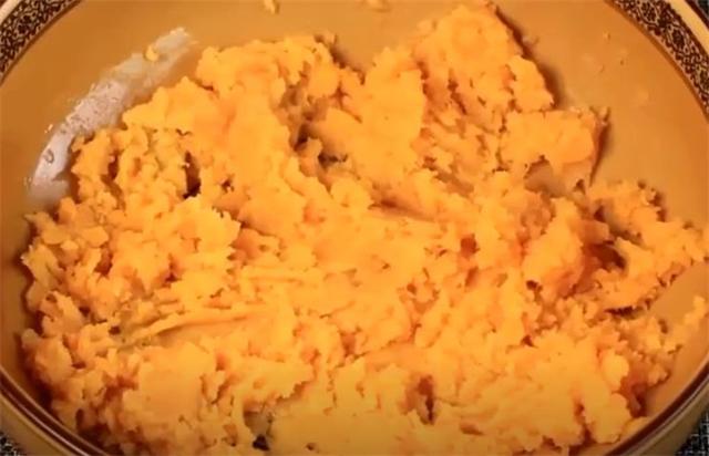 2.用叉子搗碎成紅薯泥。