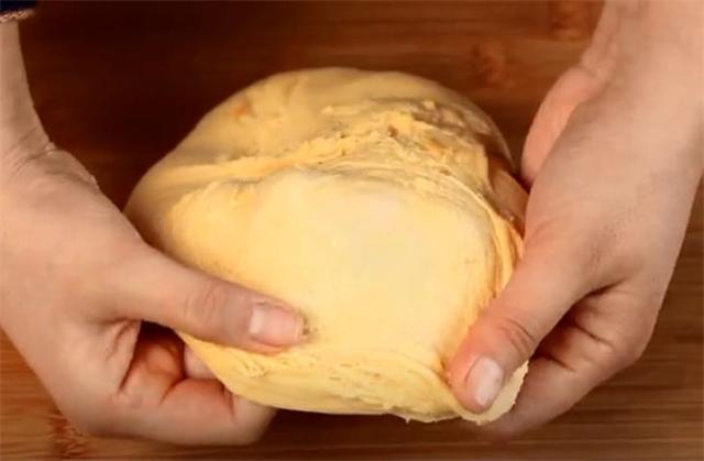 4.揉成面團后在案板上繼續(xù)揉,像揉搓衣服一樣繼續(xù)揉10分鐘左右,揉到這樣能起膜就可以了。