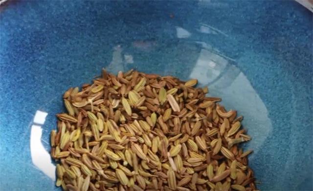 2.接下來把鍋燒熱后轉小火,往鍋里加入一小把小茴香進去,用小火翻炒,慢慢地炒出這些小茴香的香味,最后把小茴香炒到微黃,炒出香味后,全部盛入碗里面。