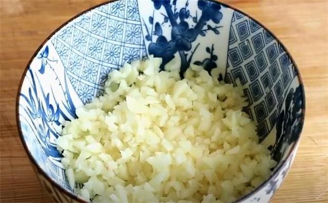 6.鍋留底油把蒜末倒一半下鍋炒,炒至金黃色出鍋,和另一半蒜末放一起,加一勺生抽和半勺素蠔油,拌勻待用。