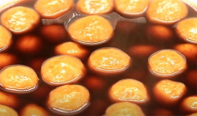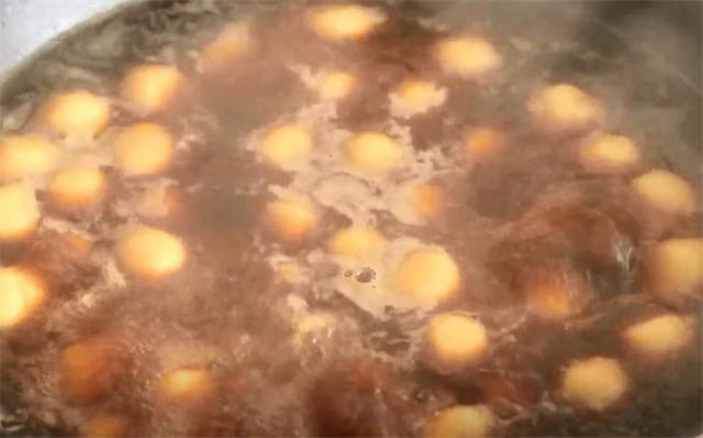 6.鍋里水開后加入半碗紅糖,紅糖化開后下入丸子,用勺子輕輕推下防止粘連,然后煮5分鐘,煮熟后關火。