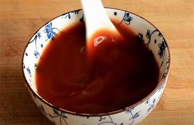 3.在碗里加入番茄醬,再加一勺生抽和兩勺香醋,加點涼水攪勻。