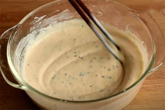 3.再加點食鹽和黑芝麻,加點面粉攪成粘稠的糊狀。