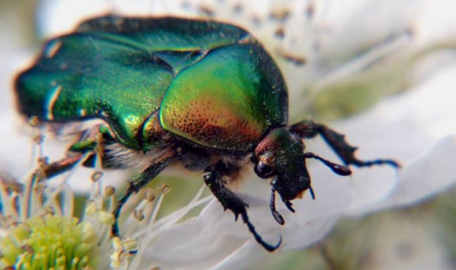 不會。 金龜子爪子鋒利,可以刺進皮膚,會蜇人。但是它們傳播細菌和毒素。幼蟲為乳白色,通常呈馬蹄形,背部有許多交叉的皺紋,尾巴上有刺猬毛。它們生活在土壤中,通常被稱為白色蠐螬。