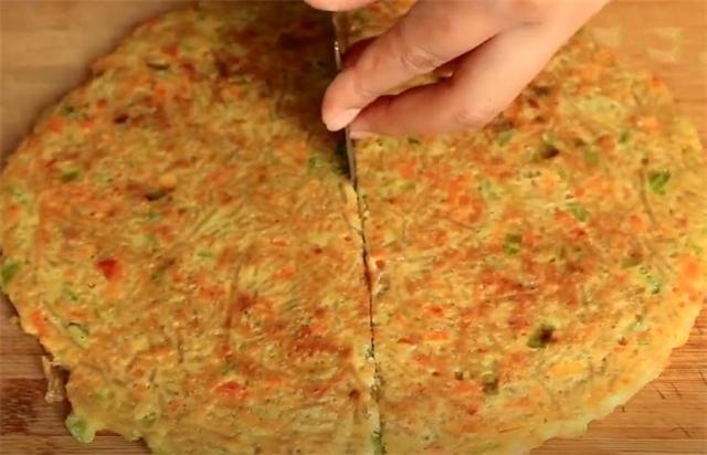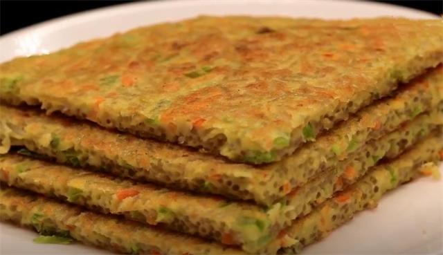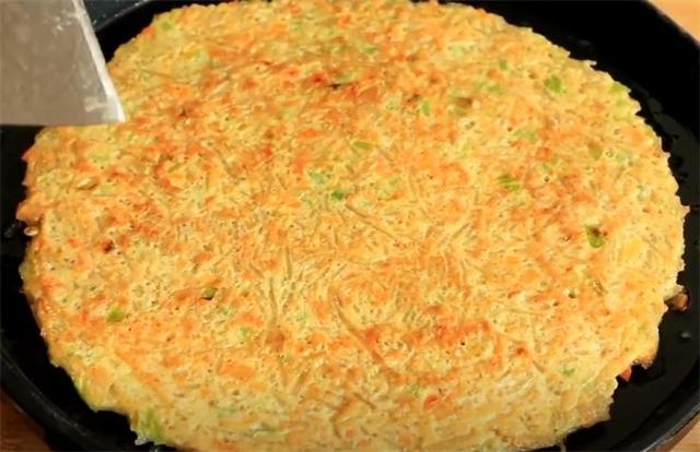 5.電餅鐺刷油后把面糊倒進去,攤成餅狀,來回翻面烙至熟透。