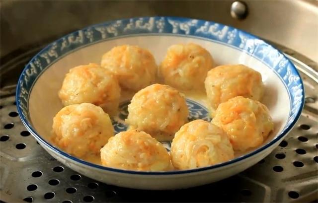 5.然后團(tuán)成丸子,上鍋蒸熟,丸子蒸熟后取出待用。