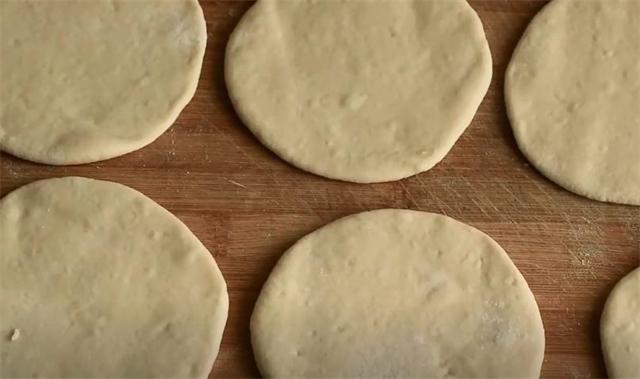 3.再把小劑子揉圓,用搟面杖搟成薄餅。