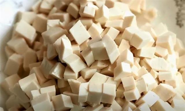 1.準備一塊嫩豆腐,將嫩豆腐切成小方丁。