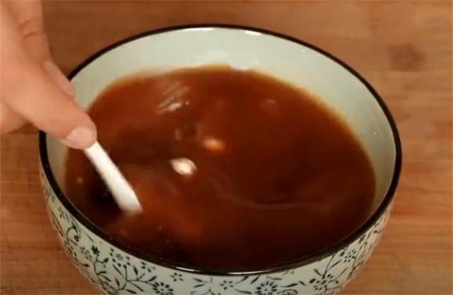 4.準備多半碗清水加一勺生抽,再加少許老抽和一勺陳醋,一勺白糖和適量食鹽,再加一勺淀粉攪拌均勻。
