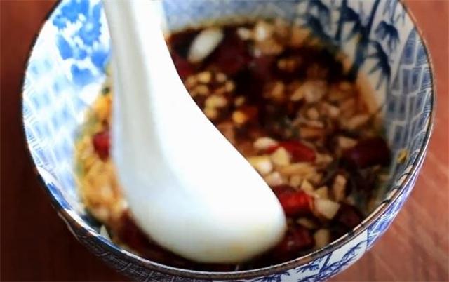 2.切點蒜末,干辣椒切段,加適量食鹽,淋入熱油,再加1勺生抽、2勺香醋,攪拌均勻待用。