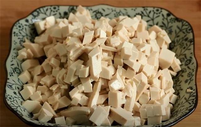 1.先把一塊嫩豆腐切成小丁。