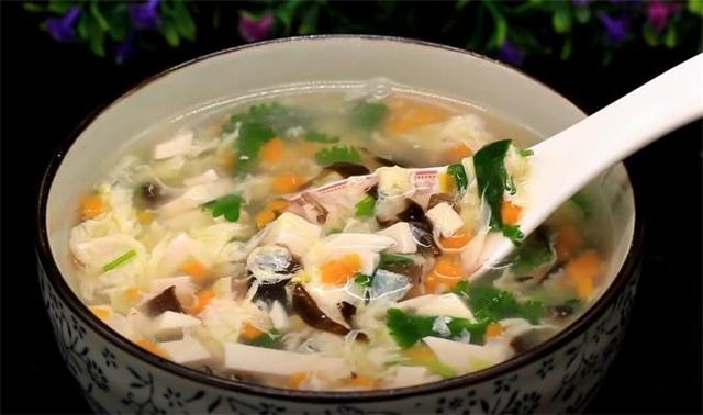 豆腐湯原來可以做得這么好喝,一次喝3大碗才過癮,營養又美味。豆腐湯可以算得上是最簡單的一種湯了,主要原料就是豆腐,當然了,你也可以放上一些你喜歡的其他食材一起煮。秋冬季喝湯,食材選擇很關鍵,豆腐,味美而營養,是補益清熱的佳品,平時多吃可清熱潤燥、生津止渴、清潔腸胃。另外,豆腐質地嫩滑,豆香濃郁,可塑性極高,用來做菜、燉湯、做餡兒什么的都可以。 豆腐還被稱之為“植物肉”,蛋白質含量豐富,拿北豆腐來說吧,每100克中蛋白質含量是12.2克。它還含有豐富的鐵、鈣、磷、鎂等人體必需的多種微量元素。因此,在不少齋菜中都可以看到豆腐的影子,它們在廚師的巧手烹飪之后,更加形狀多樣,口感豐富。