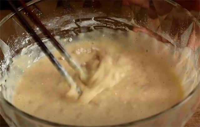 3.再加面粉攪拌成粘稠的面糊,攪拌到?jīng)]有干面粉即可。
