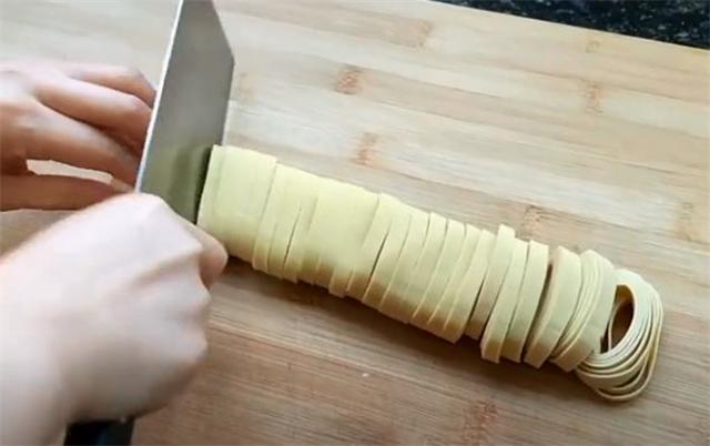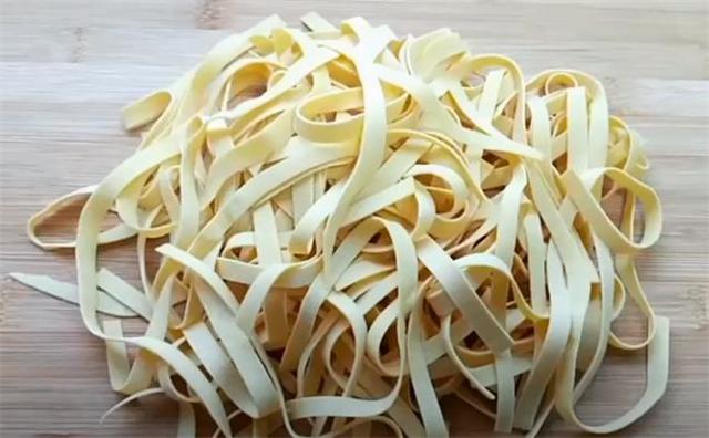 1.先把豆腐皮疊起來切成長條狀,然后用手抖散開。