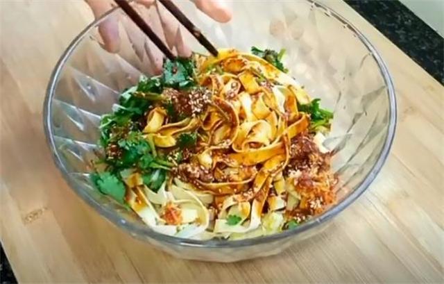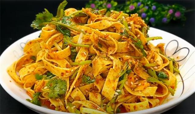 豆腐皮新做法,太香了,5分鐘搞定,開胃解饞,上桌就光盤。豆腐皮各地叫法不一樣,有的地方叫千張,有的地方叫干豆腐,豆腐皮極具營養價值,不但含有豐富的蛋白質、糖類、脂肪、纖維素,還有鉀、鈣、鐵等人體需要的礦物質。長期食用,能降低人體的血壓和膽固醇,增強人體對肝炎和軟骨病的防治能力,用豆腐皮做的各種冷、熱、素菜,都特別營養美味。豆腐皮作為豆制品中出現在老百姓餐桌上概率最高的一種,它可以經受得住多種的做法,其中以涮火鍋為多,不過大家也別只會涮火鍋,這次要分享給大家豆腐皮的一種新鮮做法,這道菜的做法,獨具風味,做法還簡單,一看就會,讓你吃過后還想吃,你也學會它,做給家人吃,保證受稱贊。
