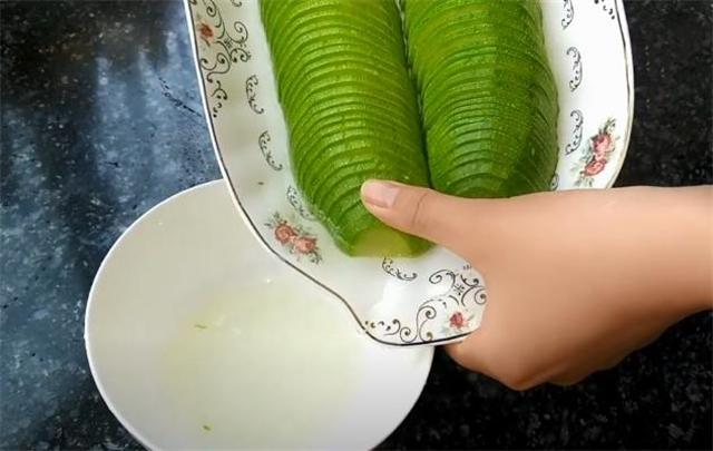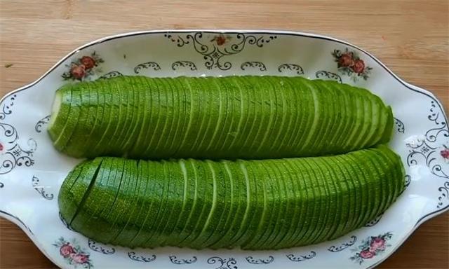 1.先把西葫蘆切成兩塊,再切成薄薄的塊裝到盤里。