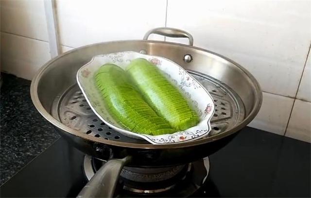2.鍋內(nèi)水燒開(kāi)以后把西葫蘆放上面,蓋上蓋子大火蒸5分鐘。