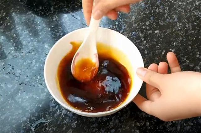 4.碗里加入一勺生抽,一勺蒸魚豉油,再加一勺素蠔油攪拌均勻。