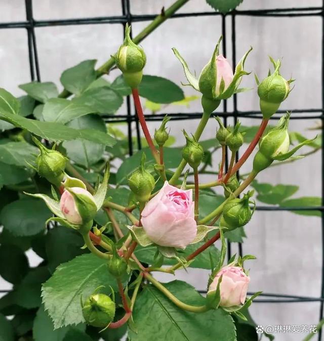藤本月季花只是其中的一個(gè)代表,因?yàn)槟壳按蠹曳N植的數(shù)量是比較多的,所以在這里也做一個(gè)簡(jiǎn)單的科普,做好支架,讓枝條沿著架子生長(zhǎng)。