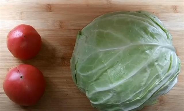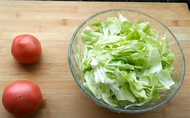 1.準備一個卷心菜和兩個西紅柿,撕成小塊后清洗干凈,控干水分備用。