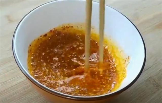 2.碗內加辣椒粉、白芝麻和食鹽,淋上熱油,攪勻后待用。