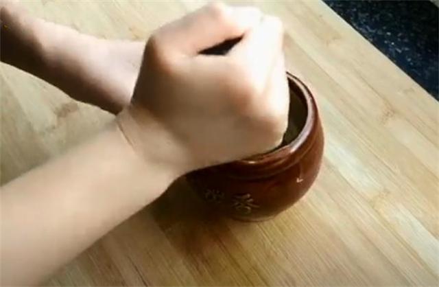 4.把大蒜拍碎,接著再搗成蒜泥,這樣能充分釋放出香味。