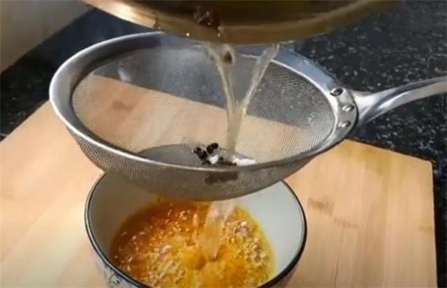 2.起鍋燒油下入花椒粒,炸出香味后把花椒油淋入碗中,這時候滿屋子都能聞到濃郁的香氣。