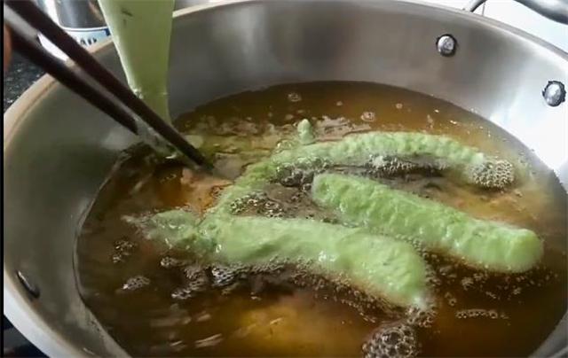 6.鍋內加適量食用油,油溫六成熱的時候下鍋炸。
